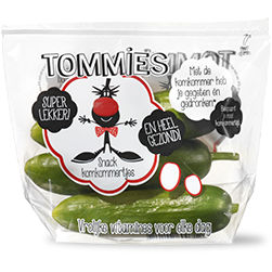Tommies snoepkomkommertjess zitten per drie in een handig meeneemzakje voor onderweg, op school, het werk of naar het strand. Ook zijn de snackkomkommers zijn hapklaar en hygiënisch verpakt.